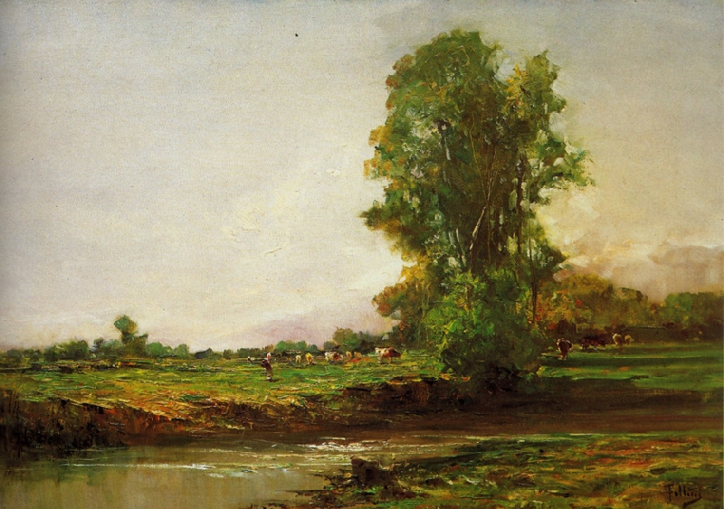 Vicino ai macchiaioli, nella sua vasta opera si leggono richiami a Delleani e alla scuola di Rivara.